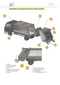 | Porte arrière 8 vérins à 10 | 02 faces latérales-trémie : 1M3 et vanne de vidange | |