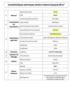 Capacité | 08M3 / 10M3 /12M3/ 14M3/ 16M3/ 18m3 |